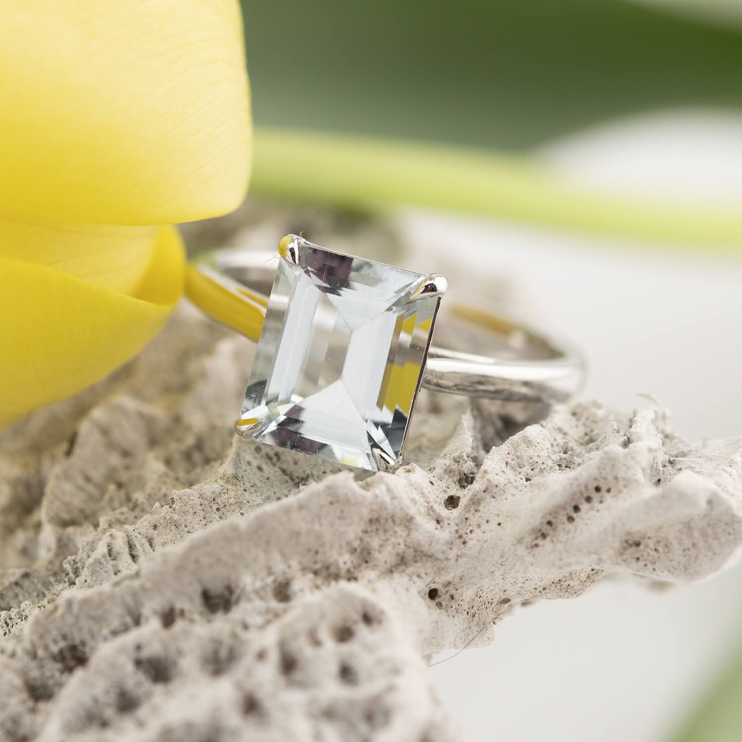 Aquamarinul este piatra lunii martie si simbolizeaza curajul, claritatea si comunicarea. Culoarea sa albastru-turcoaz aminteste de apele cristaline ale oceanului, aducand o senzatie de calm si serenitate. Aceasta piatra pretioasa este apreciata pentru durabilitatea sa si pentru culoarea sa distinctiva care aduce prospetime si eleganta. Aquamarinul face parte din familia berilului, alaturi de smarald si morganit.