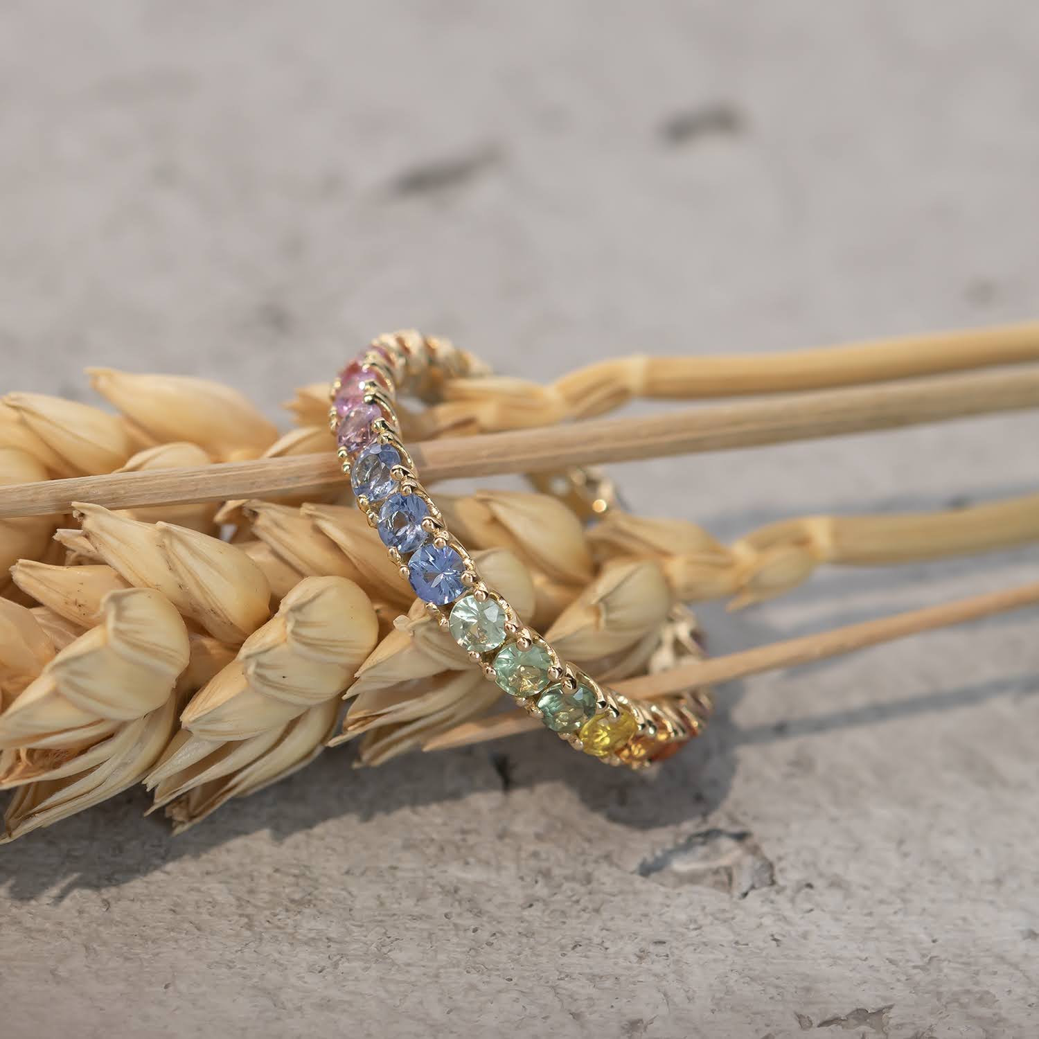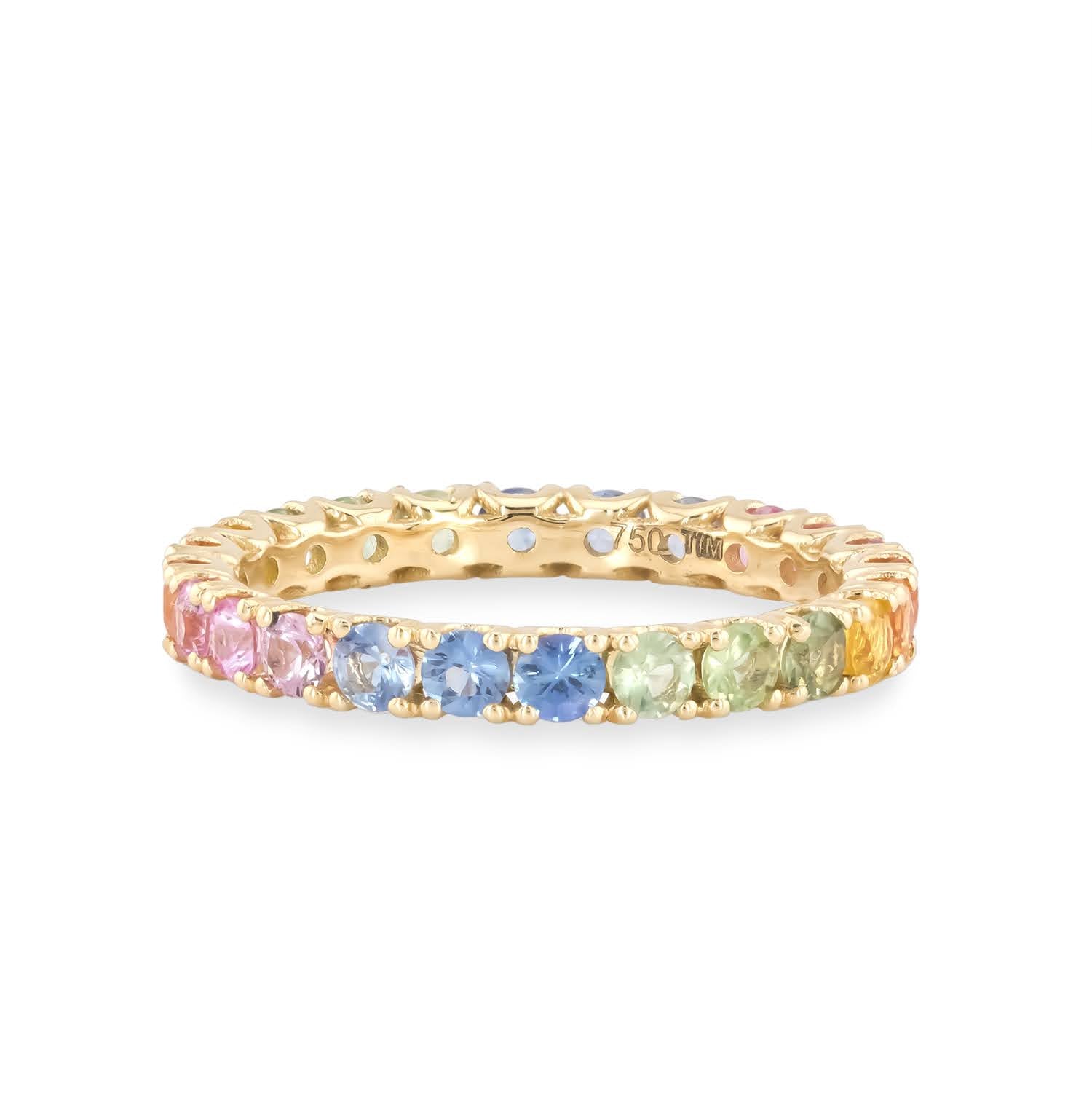 Acest inel Eternity cu 24 safire rainbow 2.05ct din aur galben de 18k montate in aur galben de 18k. Designul eternity si stralucirea exceptionala creeaza o bijuterie spectaculoasa, perfecta ca simbol al dragostei eterne sau pentru ocazii speciale.